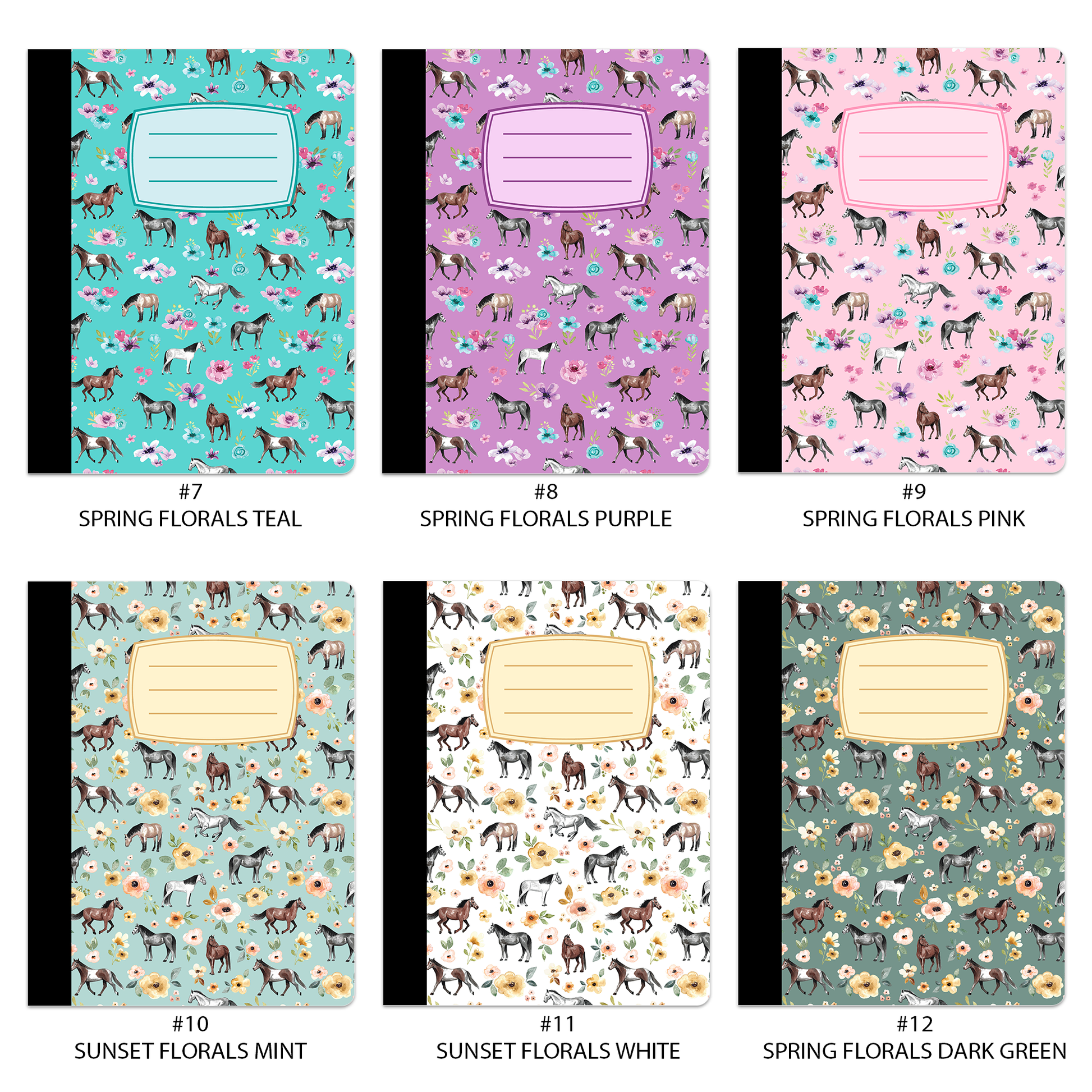Get ready to make schoolwork sparkle with our horse-themed composition notebooks! Choose from a variety of fun designs. Pick your preferred ruling—wide or college—and add a touch of magic with glitter, or holographic finishes. Perfect for jotting down notes, doodles, or daydreams, these notebooks bring a playful twist to every class. Saddle up for a colorful and creative school year!