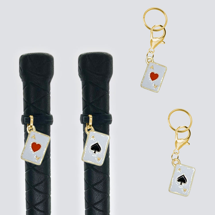 Designed to stand out, our unique Crop Charms make finding your crop in a lineup of basic black ones effortless. Made with a stretch silicone band, each charm fits most standard crop handles snugly, ensuring it stays securely in place without slipping. Crafted with split rings instead of jump rings, you can ride confidently knowing your charm won't accidentally fall off.
