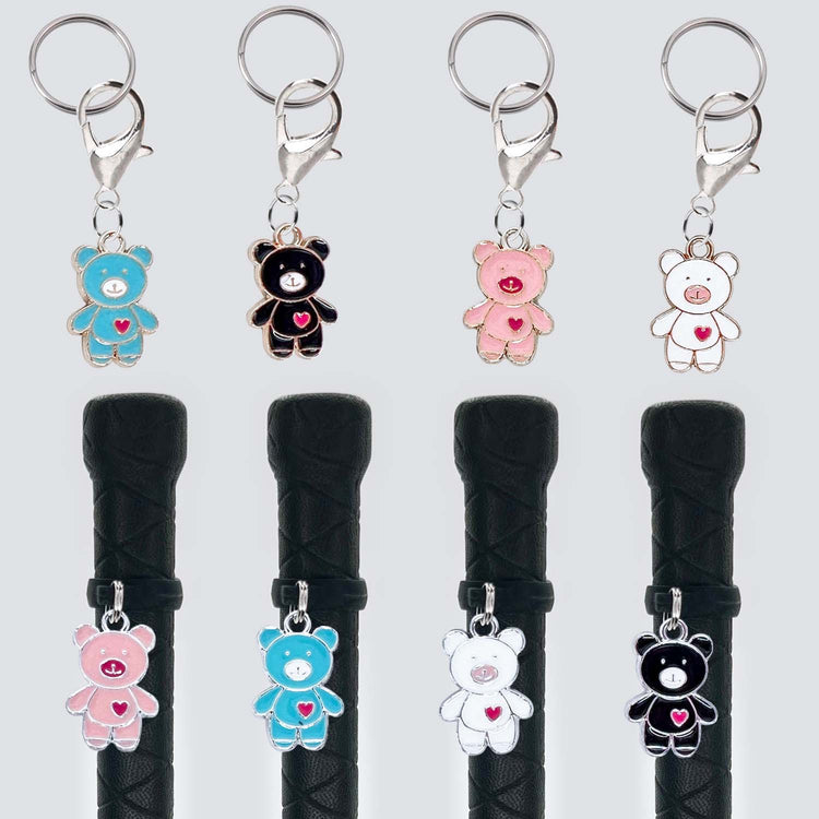 Designed to stand out, our unique Crop Charms make finding your crop in a lineup of basic black ones effortless. Made with a stretch silicone band, each charm fits most standard crop handles snugly, ensuring it stays securely in place without slipping. Crafted with split rings instead of jump rings, you can ride confidently knowing your charm won't accidentally fall off.